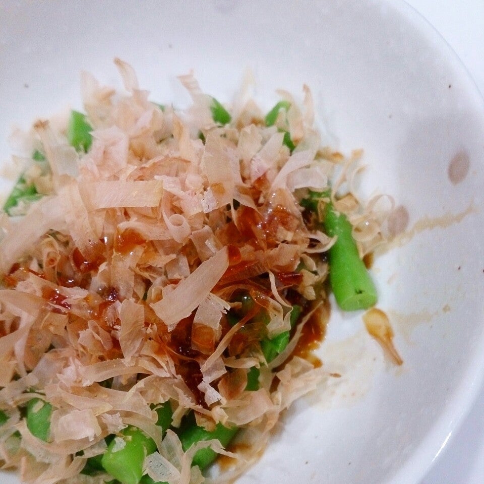 鶏肉焼いてる間にいんげんレンチンしておかかしょうゆ!