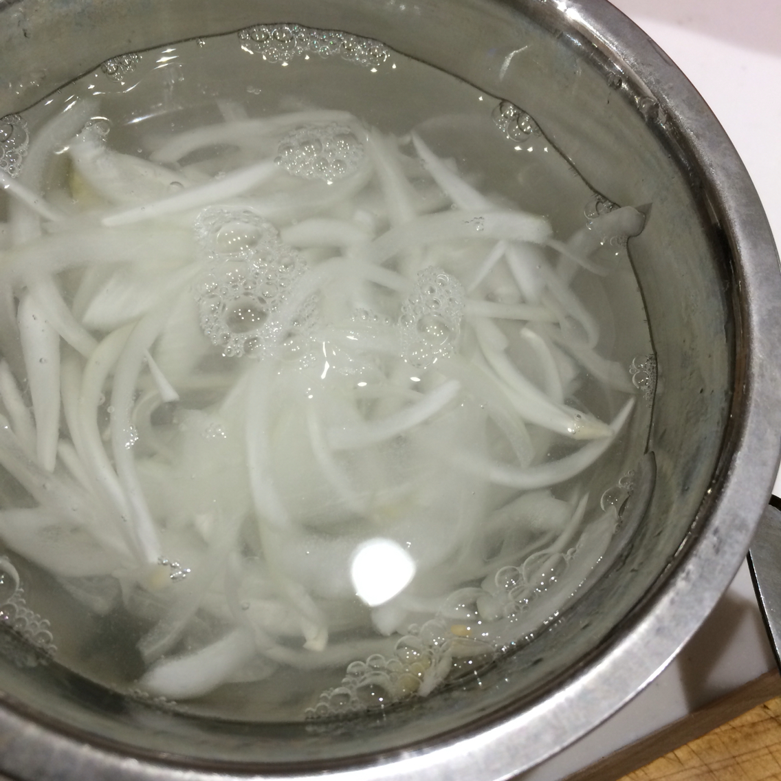 ①玉ねぎは薄くスライスして水に晒し水気を絞っておく。