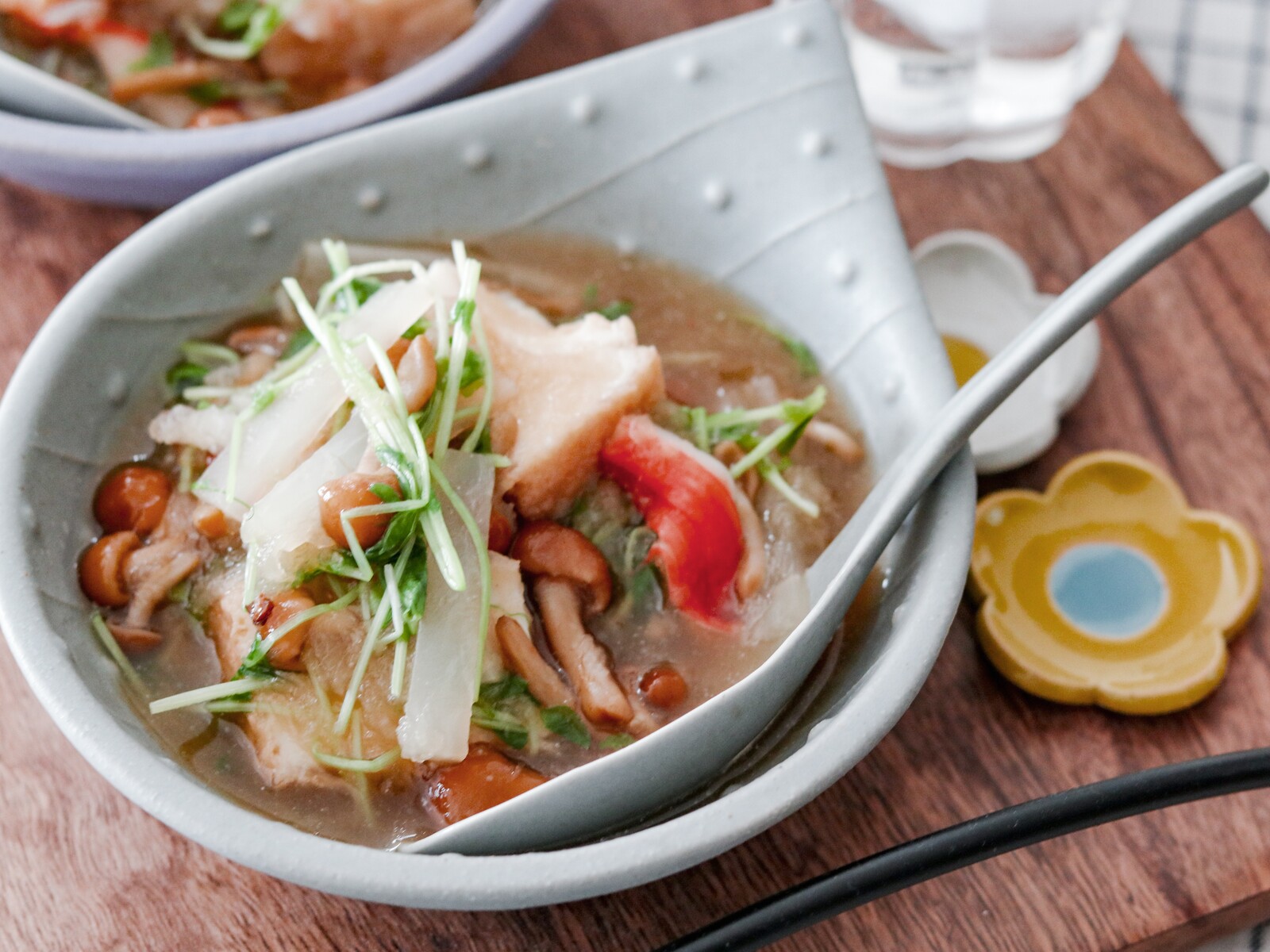 今日の朝ごはんは昨日の夜作った豚汁が残っていたので