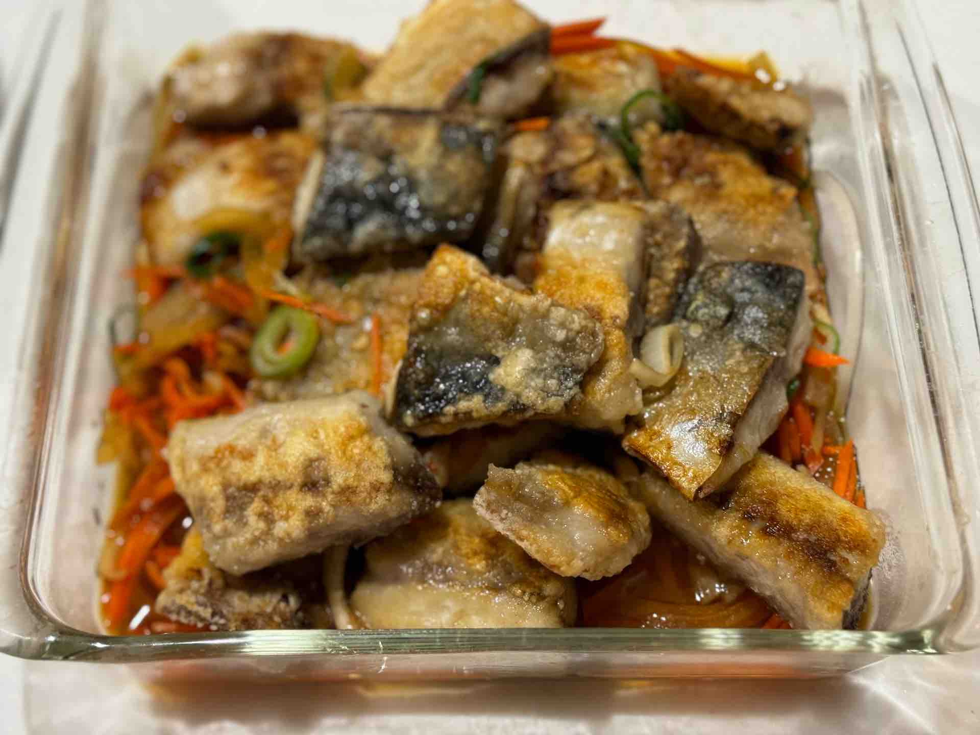 2024年03月13日 揚げない焼き鯖の南蛮漬け♡ 今日も見に来てくださってありがとうございます♡早速ですが!今日はお魚レシピのご紹介です☺我が家はサバがたくさんあるので😂鯖を使ったおかずを作ります!ちなみに・・・お料理に使っている鯖はこちらを使用しています!無添加 国産 天然 無塩 さば 鯖 切り身 30g×20切 魚 骨取り 骨なし ...価格:2,886円(税込、送料別) (2024/3/13時点)料理に使うのにちょうど良い切り身なので使いたい分だけを解凍して使っています!食べやすい大きさに切るのも切り身だと扱いやすくとても気に入っています!しかも骨なしなので小さい子供が食べるのも安心です!ちなみにピーマンを切らしていたので青ネギを使用していますがピーマンでOKです♡良かったらお試しください!【焼き鯖の南蛮漬け】【材料】 (2~3人分) 調理時間:20分鯖の切り身 6~7枚たまねぎ 1/4個にんじん 1/4本青ネギ(小口切り) 適量塩、こしょう 少々片栗粉 大さじ1~2サラダ油 大さじ1A 酢、しょうゆ 各大さじ3A みりん 大さじ2A 砂糖 大さじ1白ごま 適量【詳しい作り方】1.鯖の切り身はキッチンバサミで食べやすい大きさに切り、水分をキッチンペーパーでふき取り、全体に塩こしょうをし、片栗粉をまぶす。2.たまねぎは薄切り、にんじんは千切りにし耐熱容器に入れ【A】も入れたらふんわりラップをかけ電子レンジで2分加熱し、青ねぎを入れる。3.フライパンにサラダ油を入れて中火で熱し1の鯖を皮面から入れ2分焼いたら裏返し、蓋をして3分加熱する。4.2に鯖を熱いうちに入れなじませる。白ごまはお好みで【ポイント】*電子レンジは600wで加熱しました。*作ってからすぐにお召し上がりいただけますが冷蔵庫で冷やすと味なじみが良く、さらにおいしくなります!*青ネギを使用しましたが、ピーマンを使用するときは一緒にレンジで加熱してください。*少し酸っぱいです。お好みで調節してください。献立に悩んだときはここから検索と保存が可能です 🍳あいのおうちごはんレシピ検索はこちら🍳レシピブログに参加中♪愛用品はこちらYoutubeで料理動画はじめました♡作り方の動画など載せています!これから増やしていく予定なので・・・♡チャンネル登録&グッドボタンよろしくお願いいたします♡【重版決定*レシピ本発売中】たったこれだけでごちそう! あいのシンプルおうちごはんBEST Amazon/楽天市場書店にてご購入いただけます!レシピ本の内容についてはこちらから毎日の献立に困ったら???【レシピの検索はこちらをクリック】