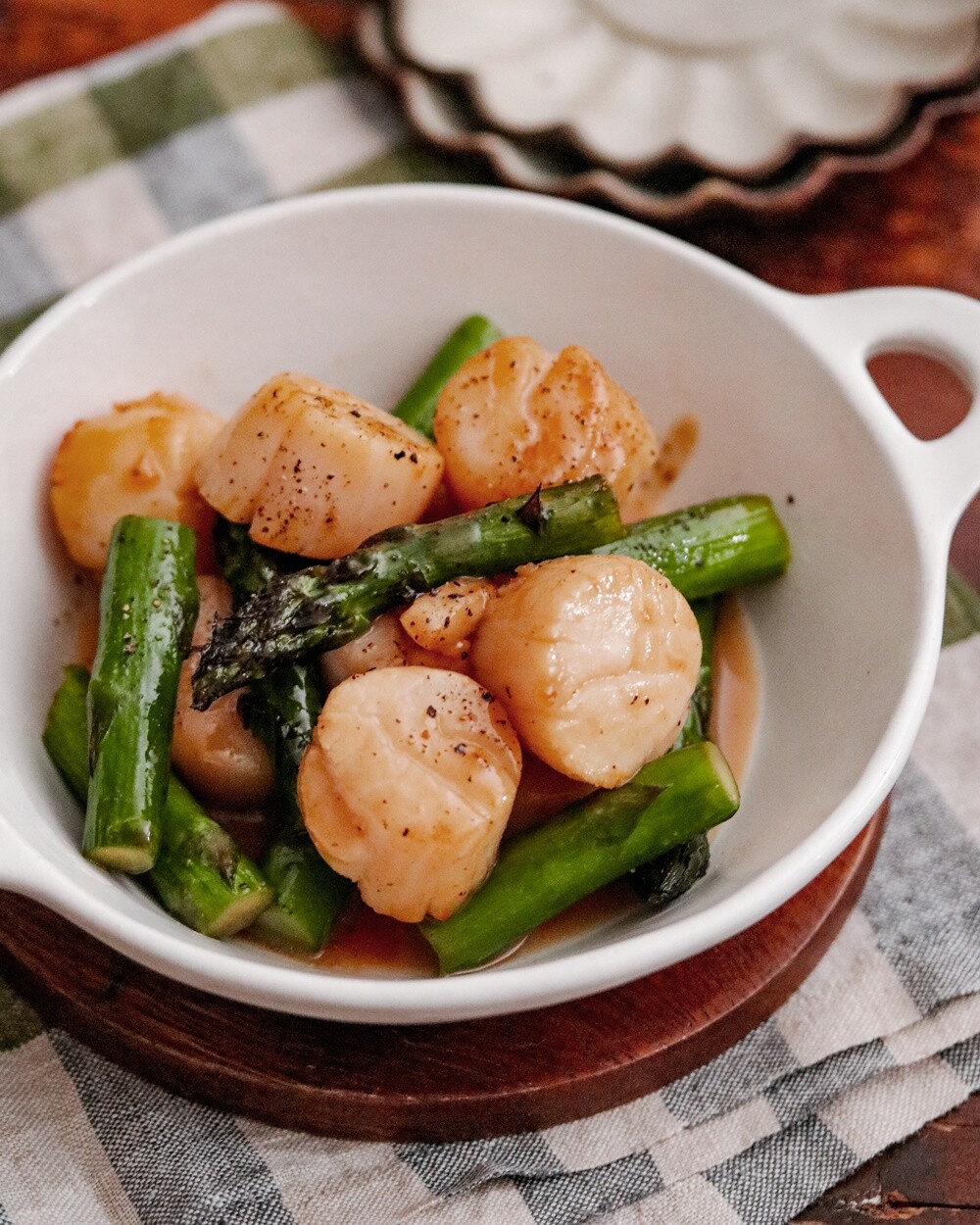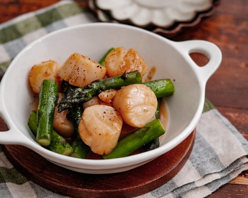 2023年06月12日 隠し味でコテさっぱり♡ホタテとアスパラのめんつゆバターソテー♡ 今日はアスパラを使った簡単レシピ!めんつゆを使うので味付けも簡単!隠し味でさっぱりというと何を想像しますか??今回はコテさっぱりを実現するために\レモン汁/を使用しましたよ♡これがとっても美味しくてこれから暑くなる季節にも嬉しい味付けです!よかったらお試しくださいね!【ホタテとアスパラのめんつゆバターソテー】【材料】 (2人分) 調理時間:10分帆立の貝柱(刺身用) 10個アスパラ 3本バター 10gA めんつゆ 大さじ1A レモン汁 小さじ1塩、粗挽き黒こしょう 少々【詳しい作り方】1.アスパラは1センチほど切り落とし、3センチほどピーラデー皮をむき3~4等分の長さに切って、ホタテは水気を拭き取っておく。2.フライパンにバターを入れて中火で熱し1を入れて加熱し、アスパラに火が通ったら【A】を入れてなじまぜ、塩、粗挽き黒こしょうで味を調える。【ポイント】*めんつゆは3倍濃縮を使用しました。*ホタテは刺身用なので完全に火が通らなくても🙆♀献立に悩んだときはここから検索と保存が可能です 🍳あいのおうちごはんレシピ検索はこちら🍳レシピブログに参加中♪愛用品はこちらYoutubeで料理動画はじめました♡作り方の動画など載せています!これから増やしていく予定なので・・・♡チャンネル登録&グッドボタンよろしくお願いいたします♡【重版決定*レシピ本発売中】たったこれだけでごちそう! あいのシンプルおうちごはんBEST Amazon/楽天市場書店にてご購入いただけます!レシピ本の内容についてはこちらから毎日の献立に困ったら???【レシピの検索はこちらをクリック】