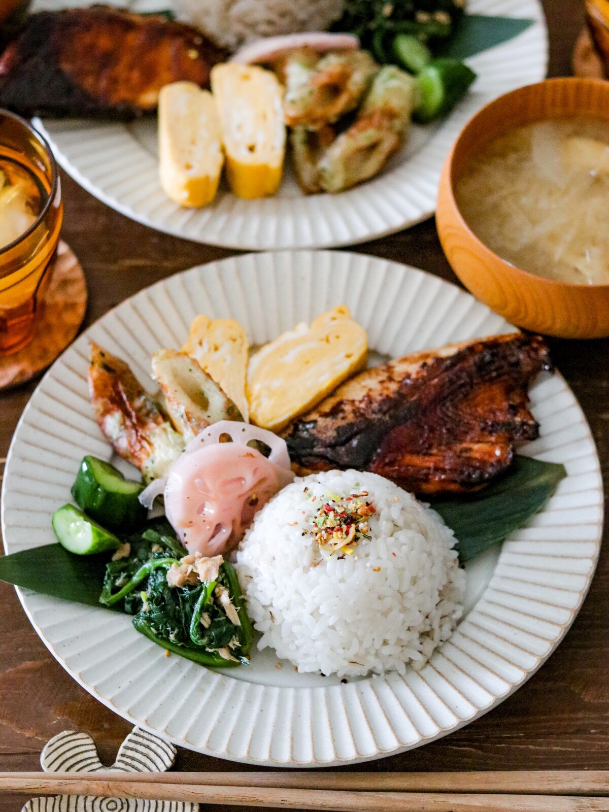 *麦ごはんと大根の味噌汁