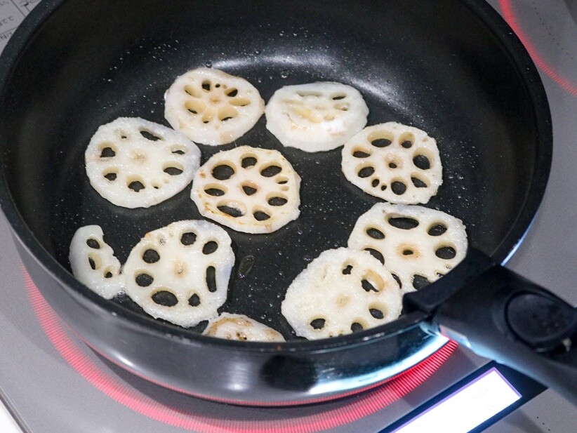3.フライパンにサラダ油を入れて中火で熱し、1を入れて火を通す。裏返しにしたりして全体に火が通ればOK。