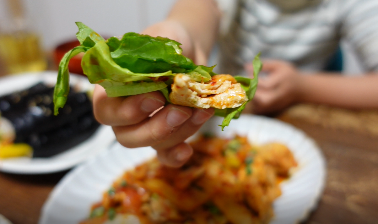 野菜に包んで食べます!