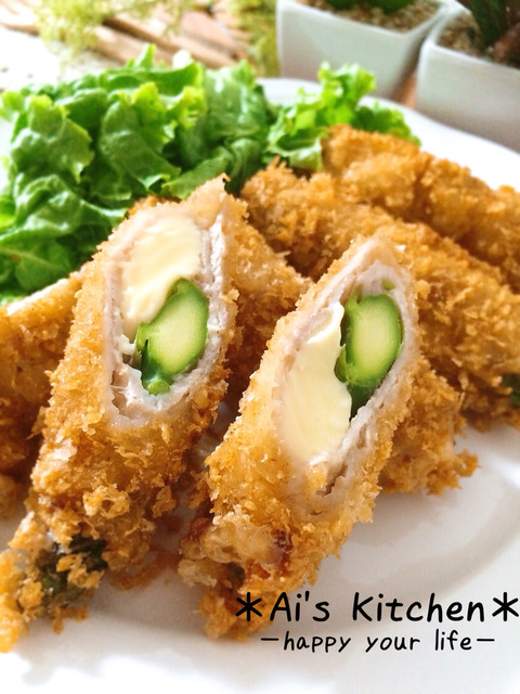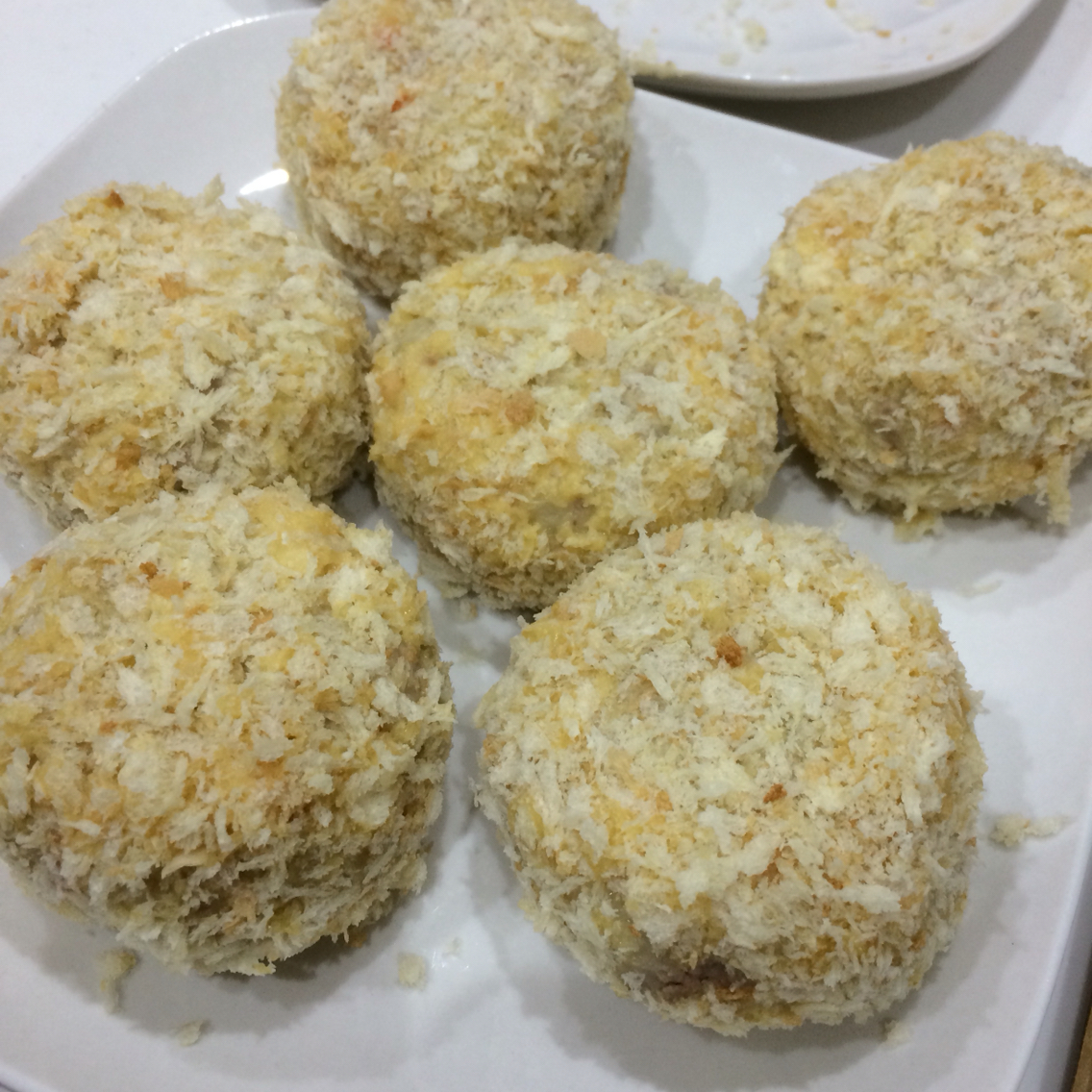 ④②を③にくぐらせたらパン粉をまぶして油で揚げたら完成です!